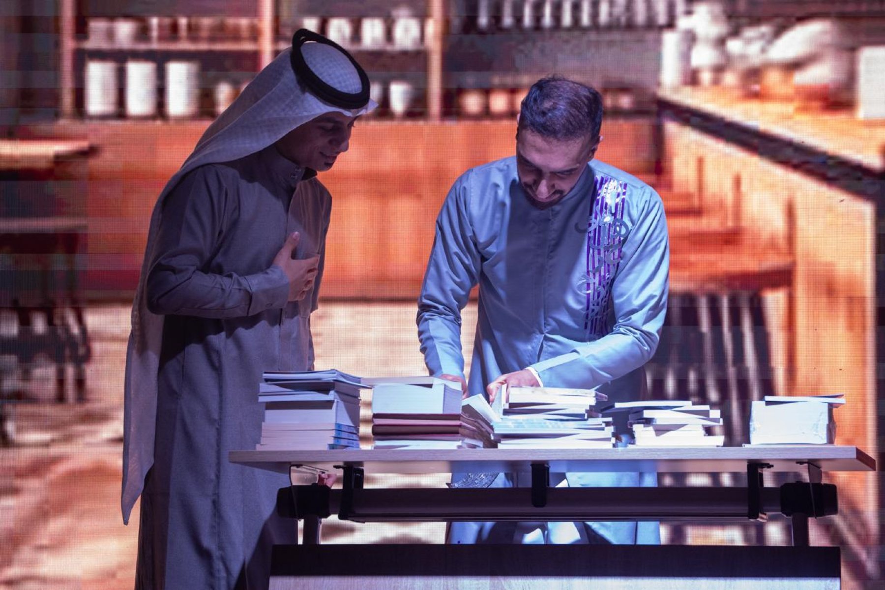 ويضيف أن المسرحية تتناول الأثر العميق لمسار وزارة الثقافة في المملكة على المسرح والفنون بمختلف أشكالها، من الشعر والنثر والرواية، إلى الموسيقى والغناء والتراث، مرورًا بالهيئات الثقافية التي تأسست ضمن هذا الحراك الوطني، حيث تدور الأحداث داخل مكتبة مظلمة، ترمز إلى البدايات الأولى، حيث يعيش الأبطال حالة من التيه والبحث، قبل أن تتوالى الأحداث عبر إرشاد الشخصيات لبعضها البعض، من خلال عدة شخصيات.